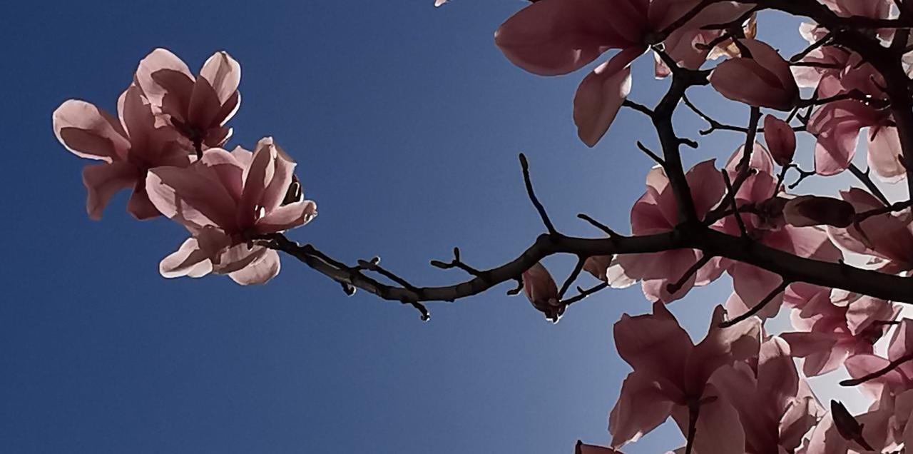 蓝天下的紫玉兰是如此的年轻